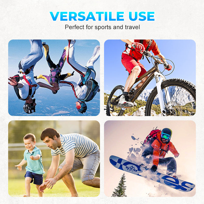 MÅNGSIDIGA ANVÄNDNINGSOMRÅDEN – Lämplig för extremsporter, familjeutflykter och reseäventyr. Från fallskärmshoppning, skidåkning, cykling till vardagsnöje utomhus – den här kameran anpassar sig sömlöst till alla scenarier. Dess lilla storlek och lätta design gör den enkel att montera eller bära, vilket ger dig friheten att utforska och fånga varje spännande ögonblick utan ansträngning.