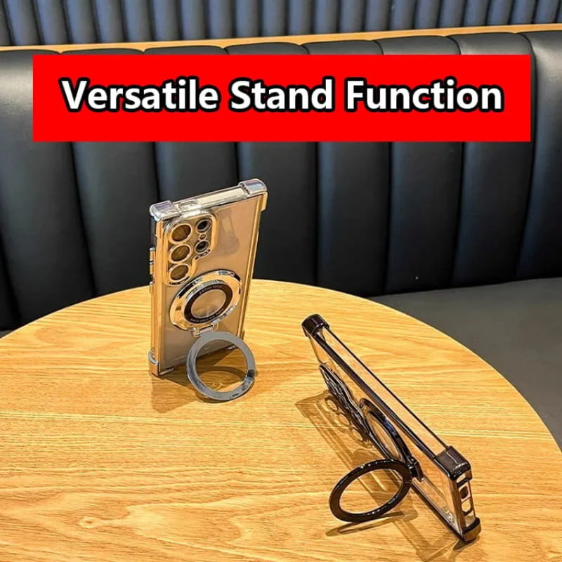 INVISIBLE STAND MAGNETIC CASE: Detta är en ny serie som erbjuder magnetisk ring och stödfunktion för telefonen. När den är öppen står den inbyggda magnetringen i aluminium stabilt i stående eller liggande läge, och när den är hopfälld är baksidan helt osynlig (inte hindrar användningen av magnetisk laddning). Den är bra att använda på ditt skrivbord eller var som helst när du arbetar eller konsumerar media!
